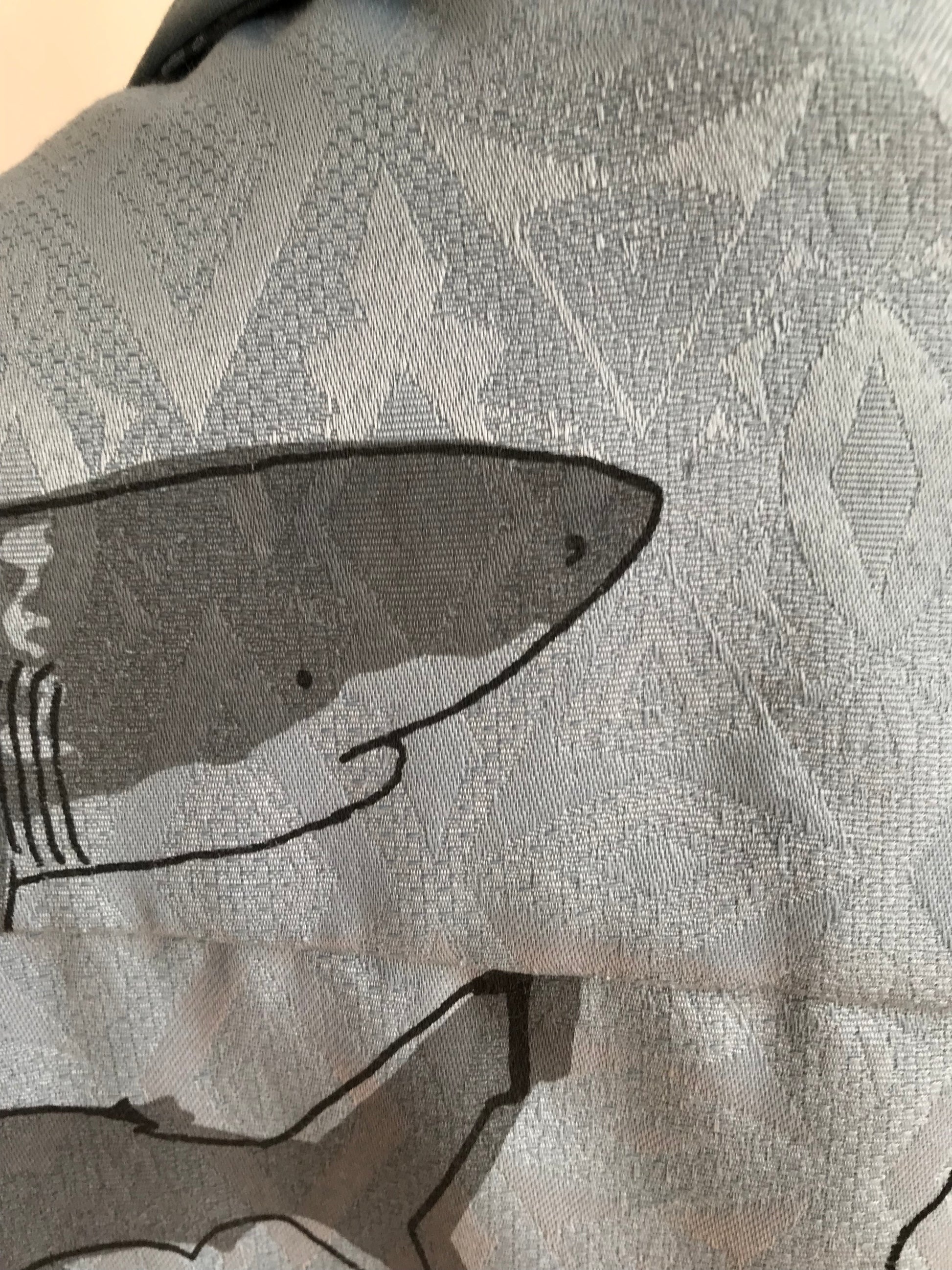 I believe this fabric used to be a table cloth, that is until I got my hands on it and printed a mix of classic sharks on it, the hammerheads, blue sharks, tiger sharks and black tip reef sharks will surly brighten your day, and everyone who sees you!