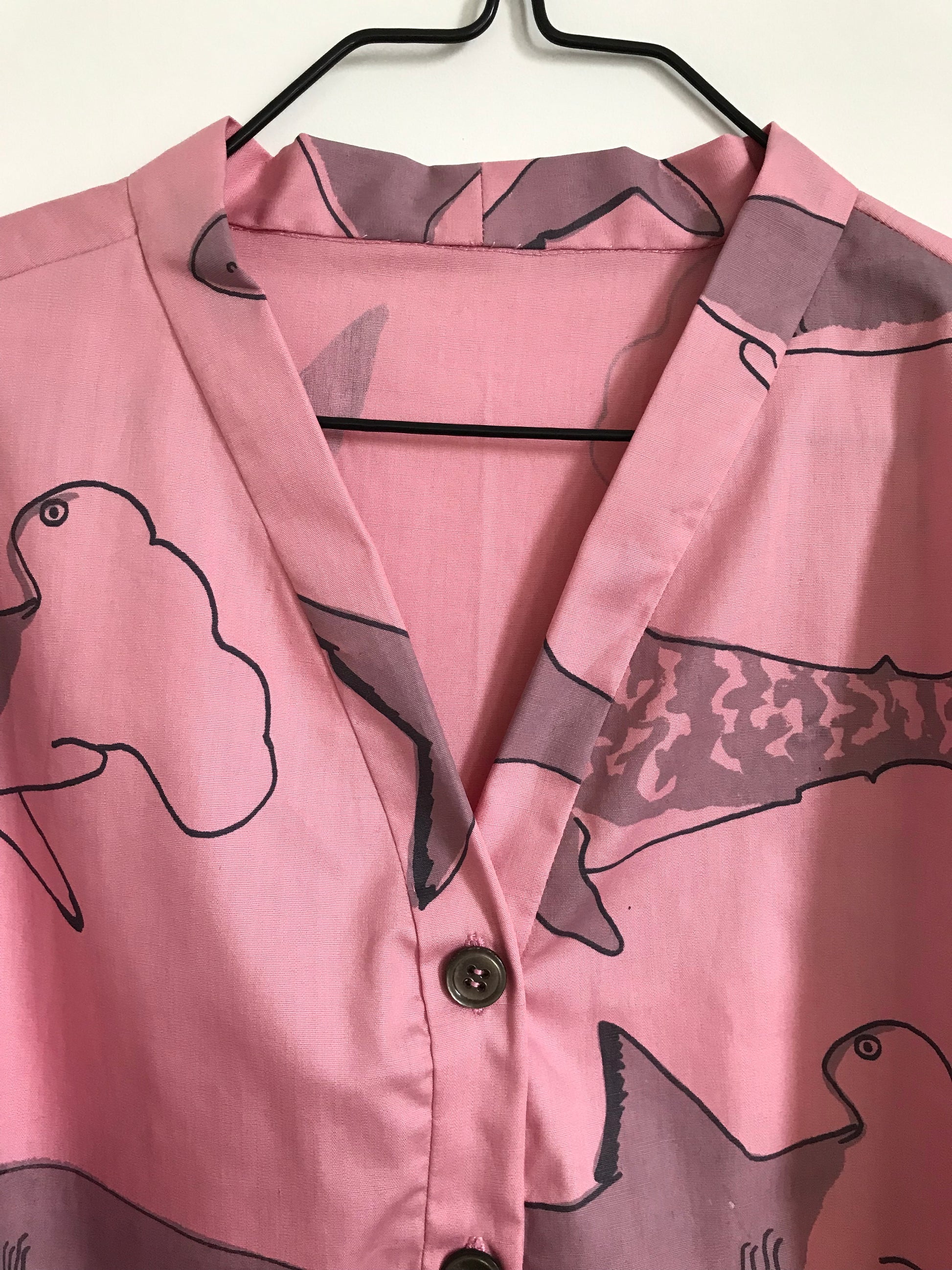 Get ready for compliments while wearing this stand-out shark shirt! Featuring some of the most well-known sharks in the sea, Hammerhead Shark, Black-tipped Reef Shark, and the curious Tiger Shark. The buttons are vintage shell buttons adding a smidge of glamour to this wardrobe staple.